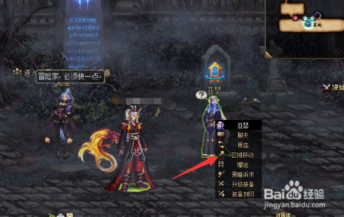 然后我们在灰色地带,点击【亚瑟】,在选项点击【区域移动】,到普雷副当地区,如图所示。