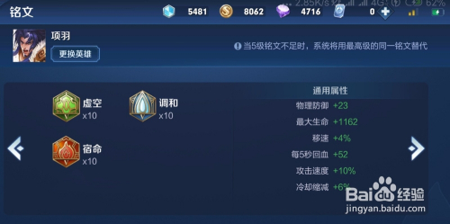 首先我们来看看小木风为大师保举的铭文,本家儿要就是为增添项羽的防御能力,然后最本家儿要的就是可以增添最大生命值。