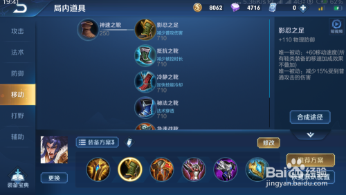 然后我们第二件装备出鞋子,保举出物理防御鞋子就可以了。