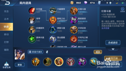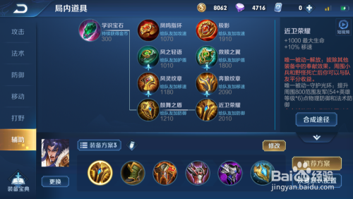 那么我们的装备怎么出呢?第一件装备保举大师可以出近卫,这样可以对我们的辅助结果获得了晋升。