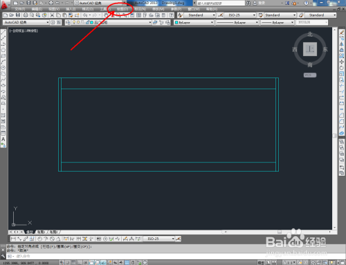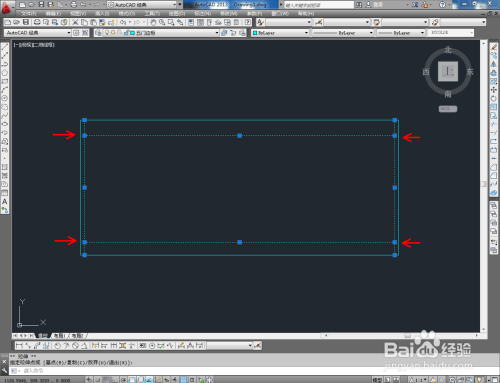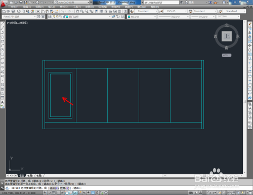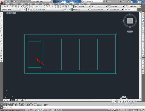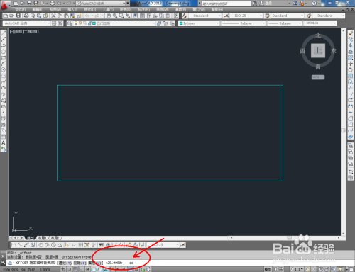点击右边东西栏中的【偏移东西】,在号令栏输入偏移数值:25后,对图案顶边和摆布两侧边进行标的目的内偏移。号令栏中输入偏移数值:80,对底边进行标的目的上偏移。号令栏中输入偏移数值:100,对底边进行标的目的下偏移。完当作后,按图示调整好选边上的端点位置(如图所示);