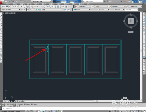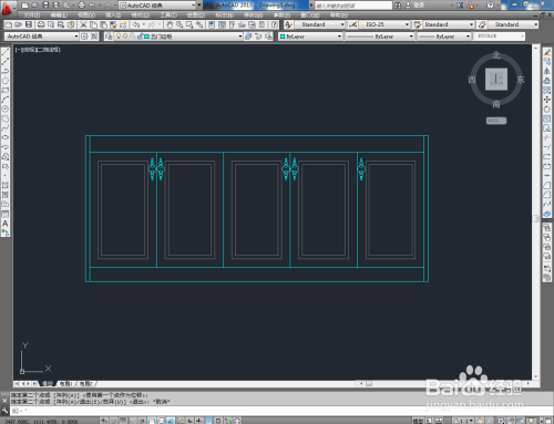 最后,将建造好的拉手图块导入文件并调整好拉手的位置。完当作细节部门的建造后,我们的四门边柜平面图便全数建造完当作。
