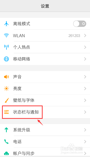 进入设置页面,点击【状况栏与通知】。