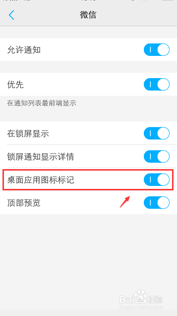 进入微信通知页面,封闭【桌面应用图标标识表记标帜】。