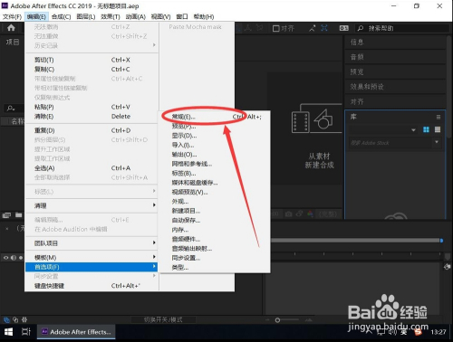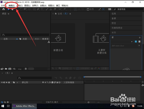 打开AE后,点击软件顶部东西栏上的“编纂”