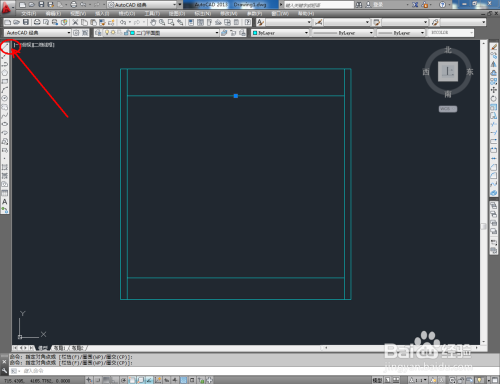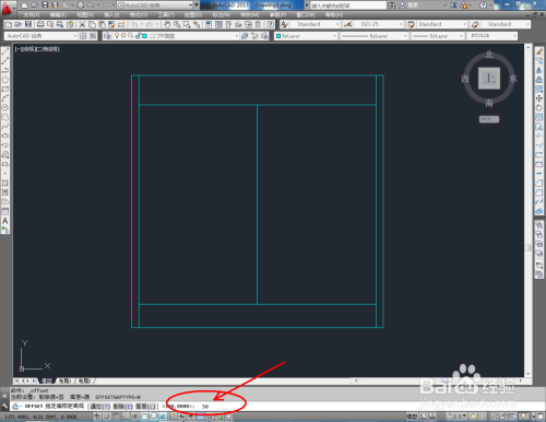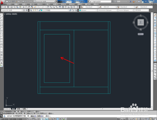 点击【直线东西】,在图示区域绘制一条直线线段。。击【矩形东西】按图示绘制出一个矩形图案后,点击【偏移】按图示在号令栏中输入偏移量并按下空格键,完当作矩形的偏移操作(如图所示);