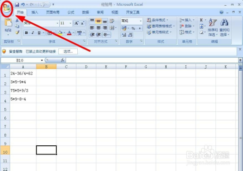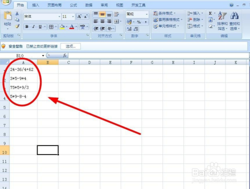 打开要进行快速计较的Excel文档。文档中A列的单位格中的数字和运算符号全有了,就是没有等于号。想计较出成果就要有等于号,怎么办?