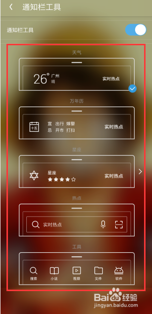 这时就来到通知栏东西的页面,打开后面的按钮,就可以打开了,如图所示