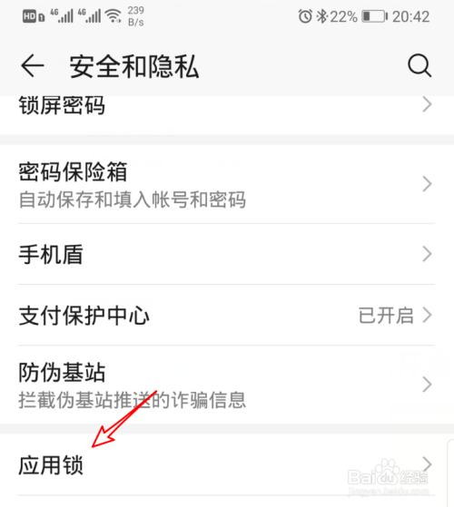 点击进入后,我们选择界面中的应用锁的选项。