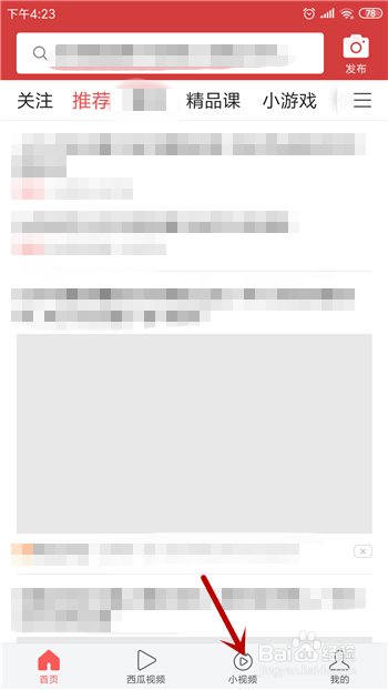 打开今日头条后在底部的导航栏里找到并点击【小视频】。