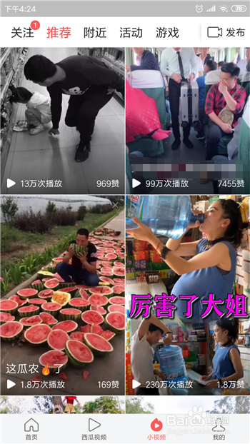 小视频里我们需要点击打开一个想要保藏的小视频。