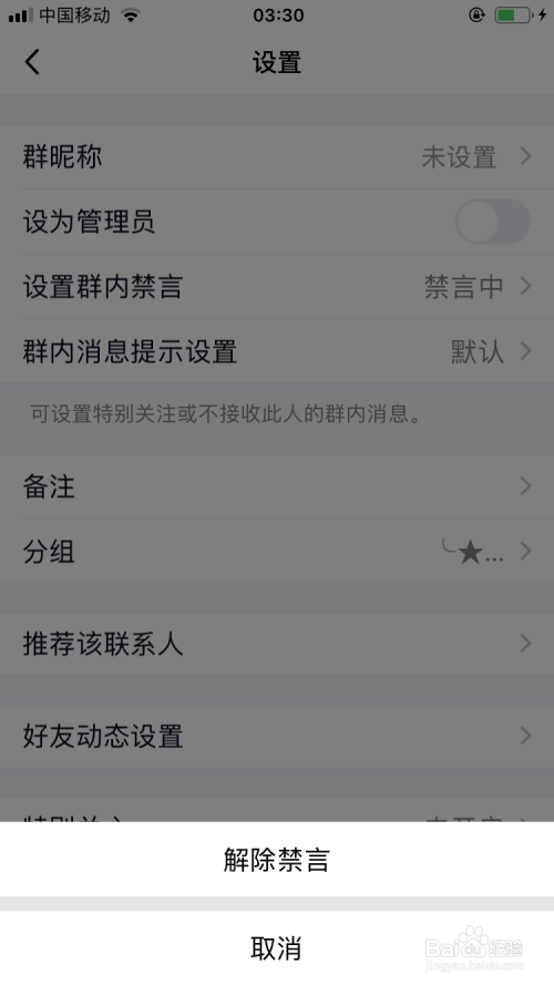 若是需要解除禁言同样点击设置群内禁言暗示以在禁言的状况下。