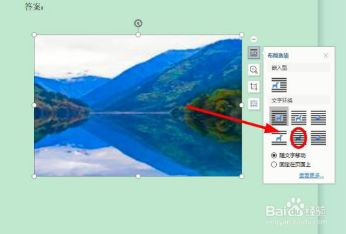 在弹出的“结构选项”对话框中,找到“文字环抱”下面的“衬于文字下方”单击