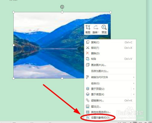 在右键菜单中,选中“设置对象格局”
