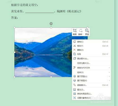 选中图片,利用鼠标右键,弹出右键菜单