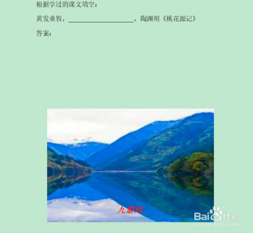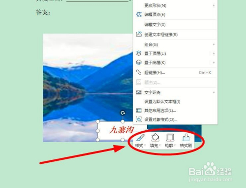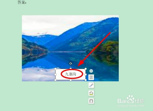 在图片中的恰当位置画出文本框并在此中输入“九寨沟”