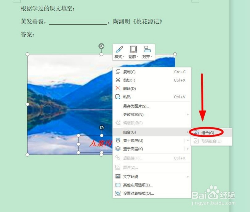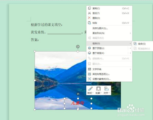 按下“Shift”键,选中图片和文本框,利用鼠标右键,弹出右键菜单