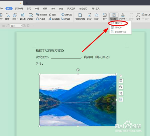 单击菜单栏中的“文本框”,弹出下拉菜单,选择“横标的目的”单击