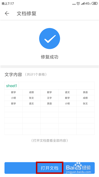 修复完当作后会在界面提醒我们【修复当作功】,然后点击【打开文档】即可。