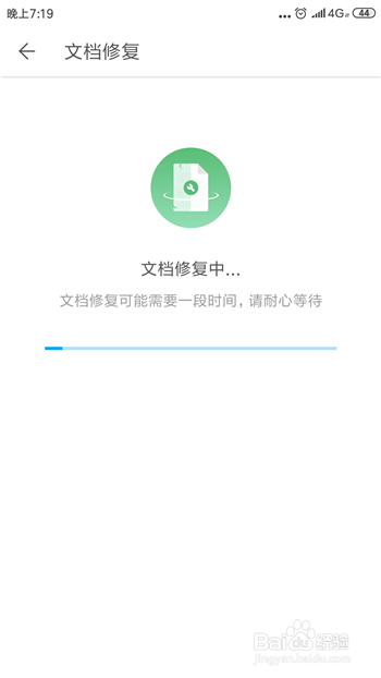 点击后会进行主动修复文档,这个过程大师需要耐烦期待。