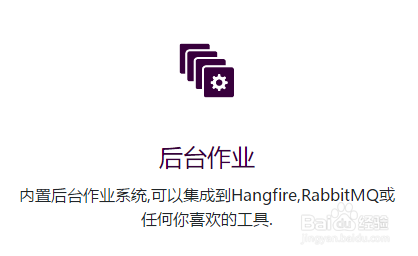 内置后台功课系统,可以集当作到Hangfire,RabbitMQ或任何你喜好的东西,如下图所示: