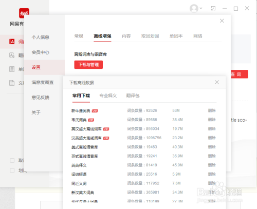 点击对应辞书后边的下载按钮,既可以将辞书放入到当地有道词库里边。