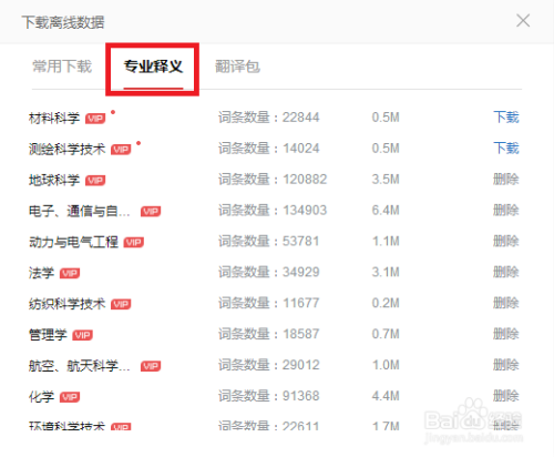 点击专业释义选项卡,既可以看到专业辞书列表;