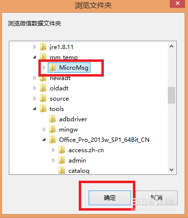 在选择微信用户对话框中,点击选择其他微信文件夹按钮,选择您已经筹办好的微信数据文件夹MicroMsg就可以了。