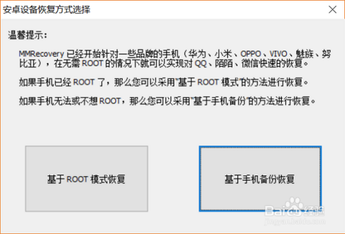 百度搜刮"MMRecovery官网"就可以找到,获得软件包后解压运行MMRecovery恢复东西, 如下图在右侧快捷恢复进口,点击“安卓微信恢复”按钮,将会弹出“安卓设备恢复体例选择”对话框,这里我们选择基于备份体例恢复。