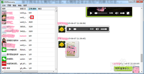 恢复东西会主动恢复已删除的微信聊天记实无需额外操作,鄙人面的截图3中红色方框中的“5”暗示恢复出来的已被删除的聊天记实的数目。如图3双击左侧老友昵称,右侧将会显示该老友的聊天信息。