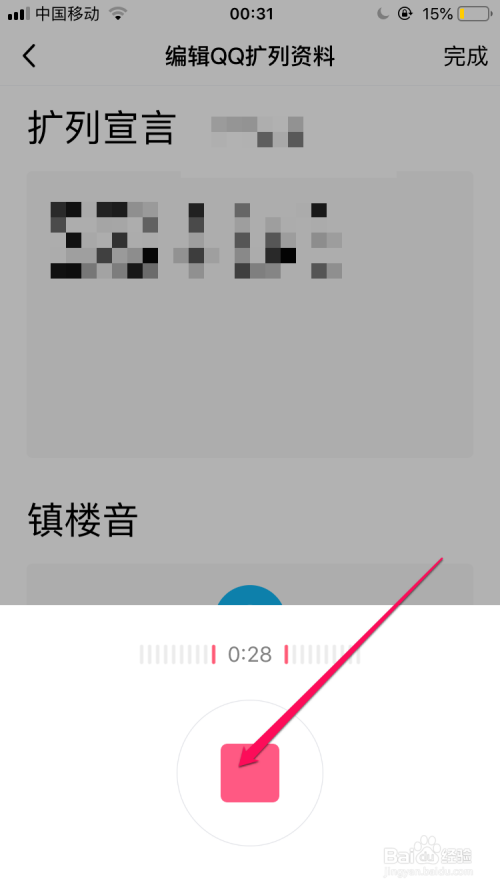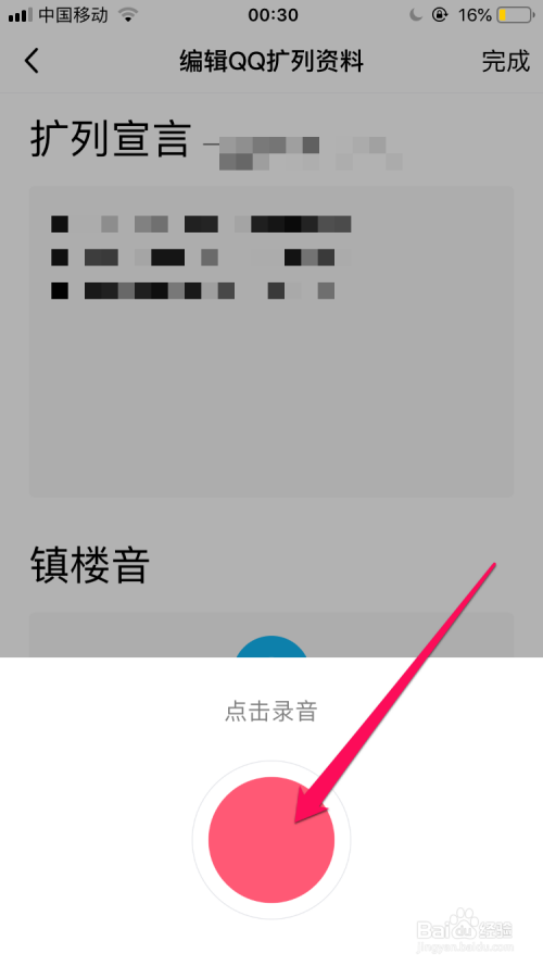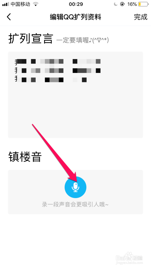 打开编纂QQ扩列资料的界面选项中在扩列宣言栏中输入“本身想说的话”,好比:我喜好吃龙虾等。若是想添加语音在镇楼音栏中点击“灌音”按钮。