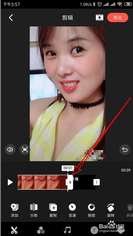 拖动起头与结从头至尾的视频节制条滑块可以调整视频的长短