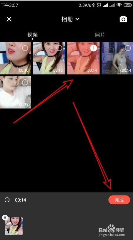 接着会打开手机相册,在相册中点击选中要剪辑的视频