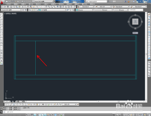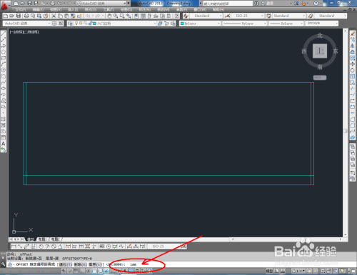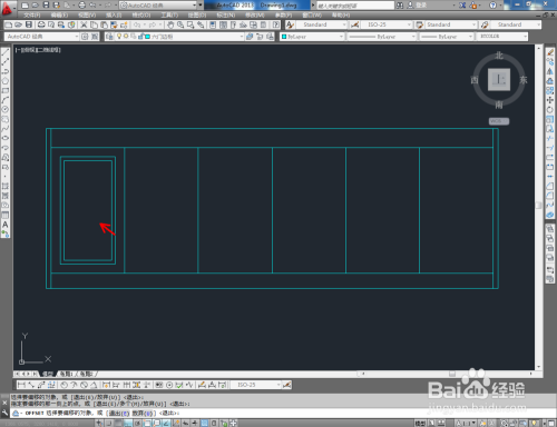 点击右边东西栏中的【偏移东西】,在号令栏输入偏移数值:25后,对图案顶边和摆布两侧边进行标的目的内偏移。号令栏中输入偏移数值:80,对底边进行标的目的上偏移。号令栏中输入偏移数值:100,对底边进行标的目的下偏移。完当作后,按图示调整好选边上的端点位置(如图所示);
