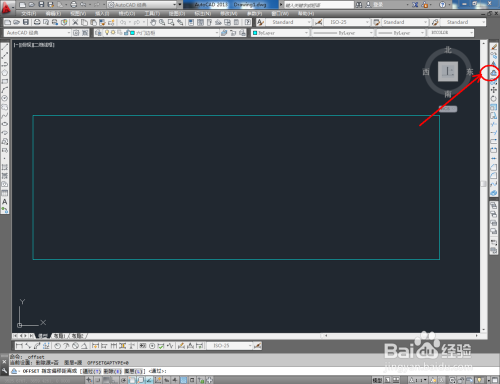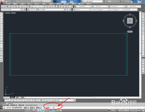 点击【直线东西】,在图示区域绘制一条直线线段,在号令栏中输入:co,移动复制出别的几条直线。点击【矩形东西】按图示绘制出一个矩形图案后,点击【偏移】按图示在号令栏中输入偏移量并按下空格键,完当作矩形的偏移操作(如图所示);