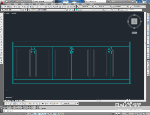 最后,将建造好的拉手图块导入文件并调整好拉手的位置。完当作细节部门的建造后,我们的六门边柜平面图便全数建造完当作。
