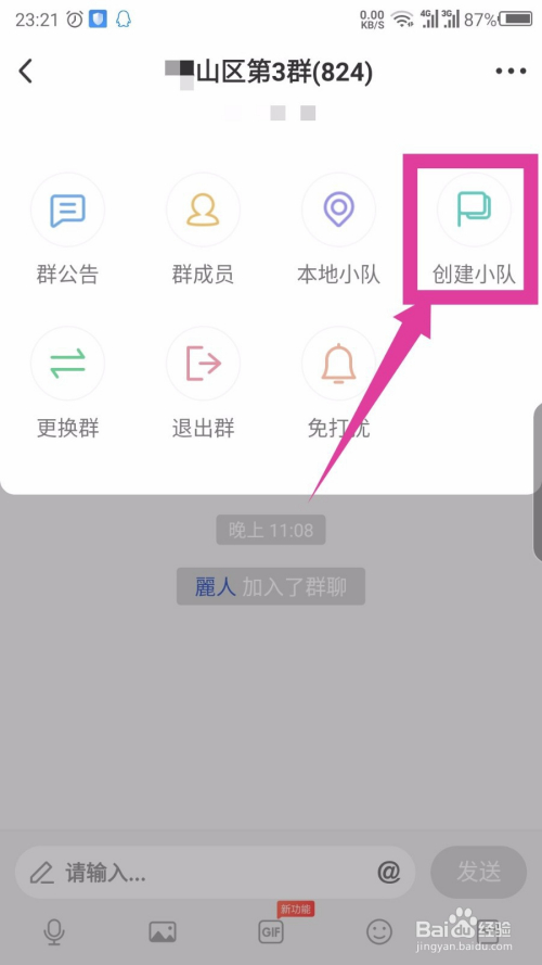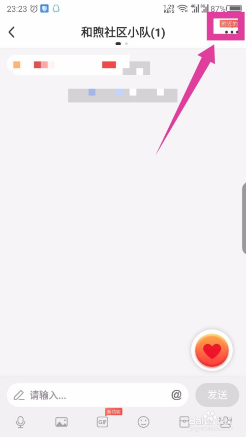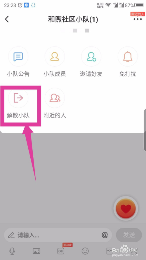 小队建立当作功后,本身是队长。在本身的小队里面,点击右上角的三个点。如图所示