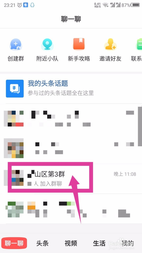 首先选择一个位置群,就是什么区的群,位置转变就可以改换的群,打开群。如图所示