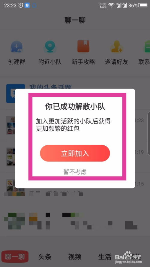 然后能看到建立小队选项,本身建立一个小队,点击建立。如图所示