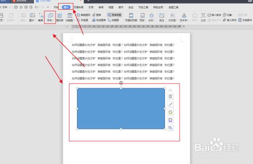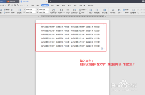 在文档中输入“ 如何设置图片在文字”穿越型环抱“的位置? ”,如图: