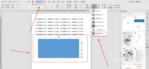 把外形拖到文字时,显示了图片是”穿越型环抱“的插入到了文字傍边,如图: