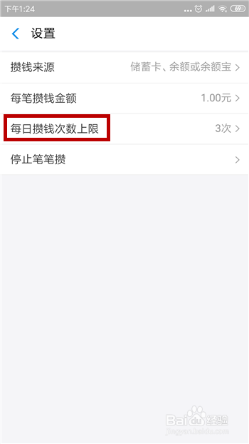 打开设置界面后即可看到【每日攒钱次数上限】,点击起头点窜。