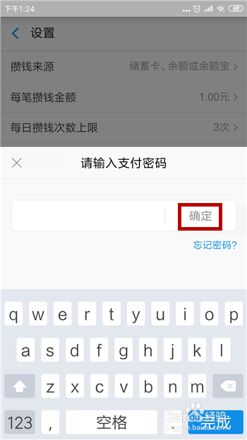点窜每日次数上限之前必需输入我们的支付宝密码,输入后点击【确定】。