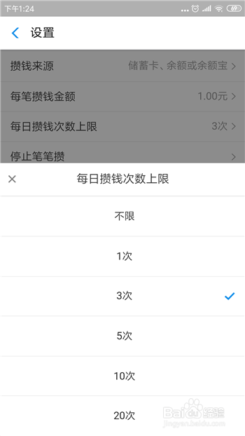 支付宝的笔笔攒上线后收到了良多人的注重,此中默认的是天天只可以攒钱三次,那怎么点窜每日攒钱次数上限呢?