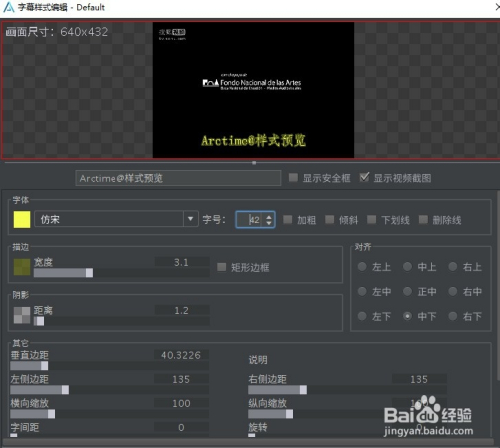 下面点窜字幕的显示结果,如图选择样式与结果,双击Default,按照需要点窜字幕样式,点击应用。