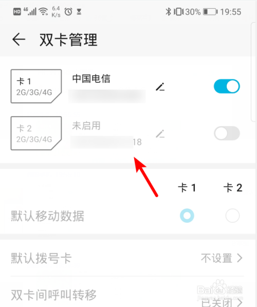 在双卡办理界面,点击需要封闭sim卡后方的开关。