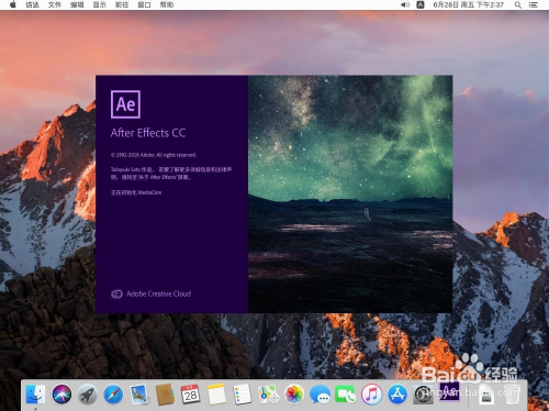 打开Ae后,点击屏幕左上角苹果标记右侧的“After Effects CC ”