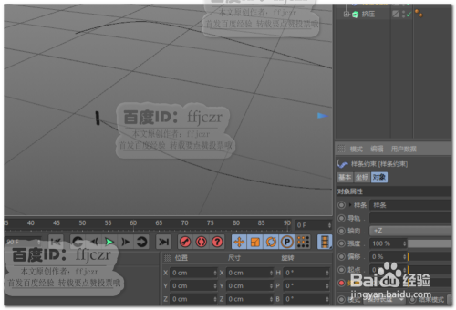 将挤压添加到一个空白对象中,给空白对象添加一个样公约束变形器。样条就是上步绘得的路径。更改样公约束对象的模式为连结长度。