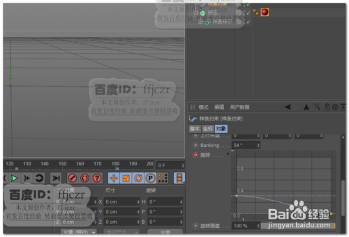 在0帧时,调整扭转项中曲线左端标的目的上移动0.4,到80帧时调整曲线右端标的目的上移动0.4.
