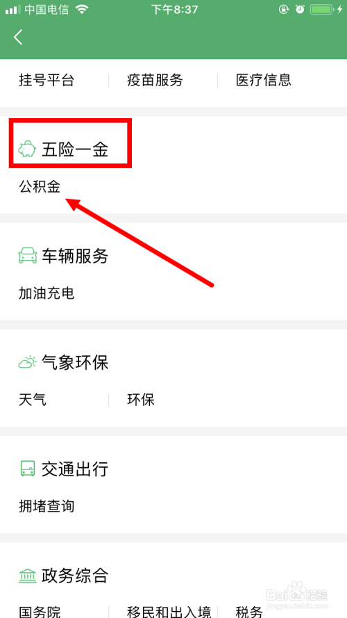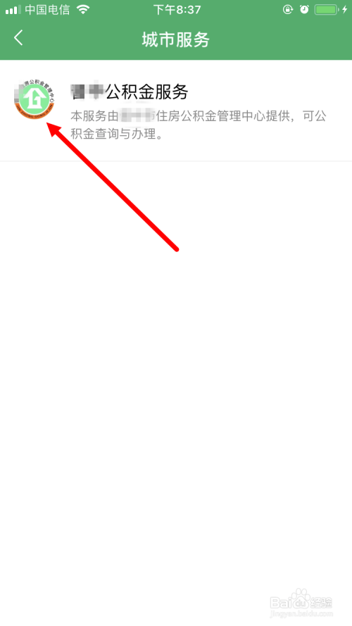 然后,点击 公积金办事 。这里供给公积金的查询以及打点办事。